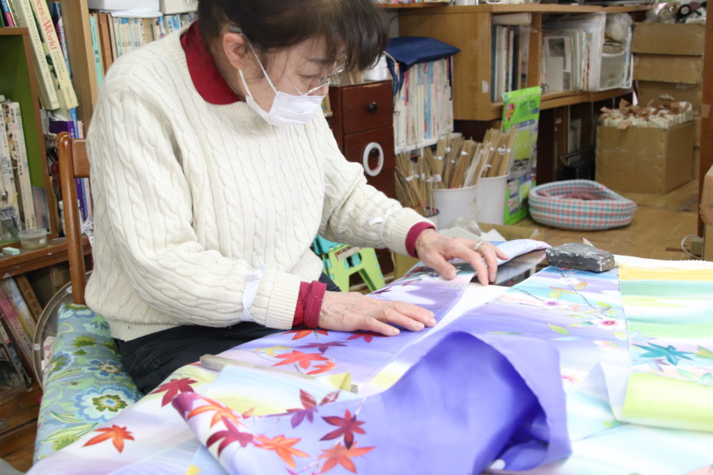 まして、現在の「風彩染」ほどの仕事に行きつくには、それはもう、通常の友禅染よりはるかに多くの技術技量が求められます。それを独学で身に着けていった叔母。